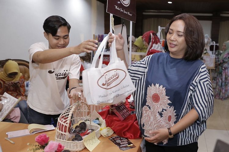 Ketua Dekranasda Kota Semarang Krisseptiana Hendrar Prihadi (Tia) mengunjungi stand UKM yang ikut berpartisipasi dalam Gebyar UKM Indonesia di Gedung Lokakrida lantai 8, Semarang, Selasa(2/10/2018).
