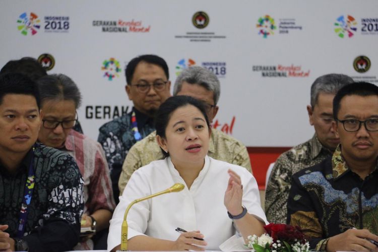 Menko PMK Puan Maharani saat konferensi pers kesiapan Asian Para Games 2018 di Jakarta, Kamis (10/4/2018).