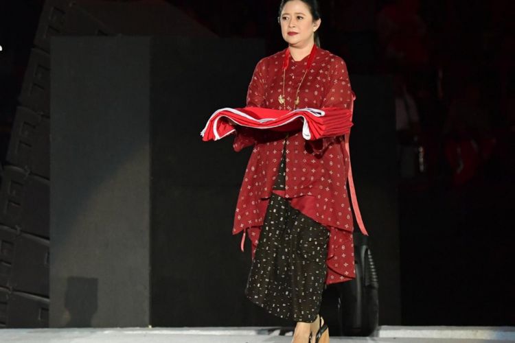 Menko PMK Puan Maharani selaku Ketua Dewan Pengarah APG 2018 didaulat membawa bendera merah putih untuk dikibarkan di tiang utama Stadion GBK, Sabtu (6/10/2018).