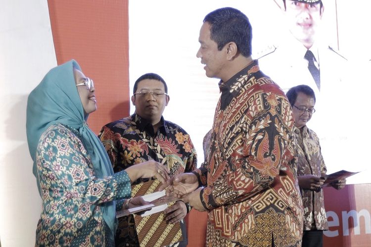 Wali Kota Semarang Hendrar Prihadi menyerahkan Letter of Intent (LoI) kepada salah seorang pengusaha peserta Semarang Business Forum (Sembiz) 2018 di Patra Semarang Hotel and Convention, Kamis(17/10/2018).(Dok Humas Pemerintah Kota Semarang)