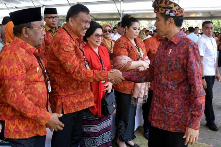 Gubernur Sulawesi Utara Olly Dondokambey bersalaman dengan Presiden Jokowi dalam Temu Karya Nasional Gelar Teknologi Tepat Guna (TTG) XX dan Pekan Inovasi Perkembangan Desa/Kelurahan (PINDesKel) 2018 di Bali, Jumat (19/10/2018) .(DOK Humas Pemerintah Provinsi Sulawesi Utara)