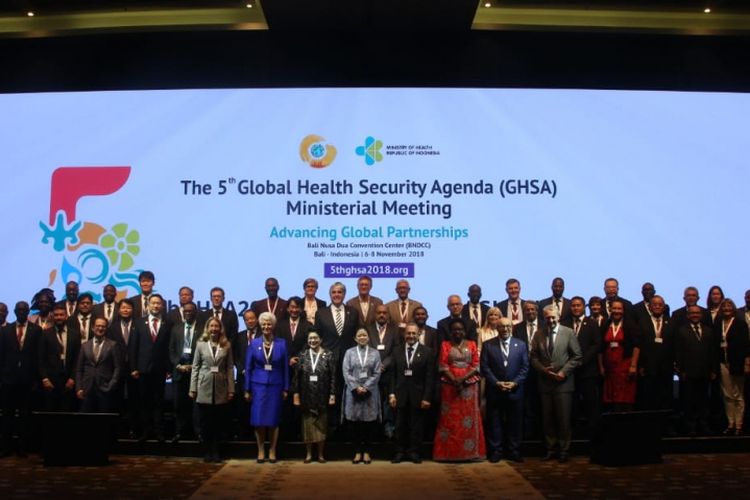 Para perwakilan negara yang menghadiri Pertemuan Tingkat Menteri Ke-5 GHSA yang diselenggarakan di Bali Nusa Dua Convention Center (BNDCC), Bali, Selasa (6/11).