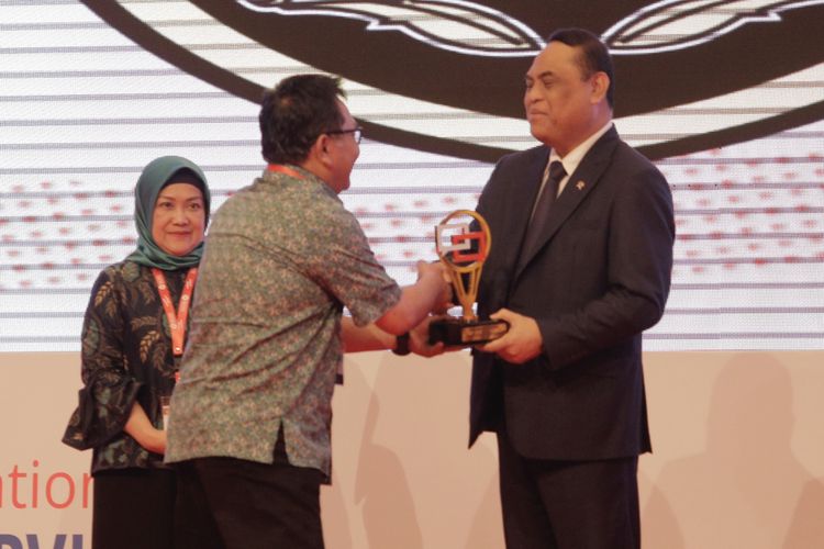 Menteri PAN-RB Syafruddin saat memberikan apresiasi kepada Pemerintah Kota Semarang sebagai Pengelola Laporan Terbaik di ajang International Public Service Forum 2018 yang berlangsung di Jakarta Convention Center, Kamis (8/11).