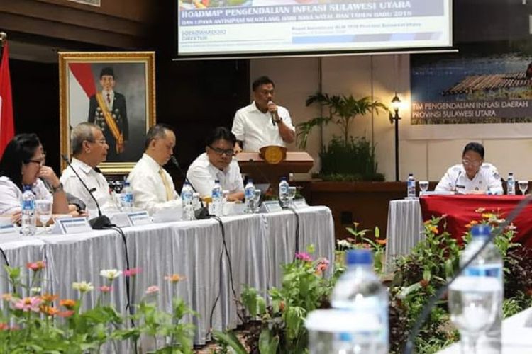 Gubernur Sulawesi Utara Olly Dondokambey dalam Rapat Koordinasi Hight Level Meeting TPID (Tim Pengendali Inflasi Daerah) di kantor cabang Bank Indonesia Provinsi Sulawesi Utara. Rabu (21/11/2018).