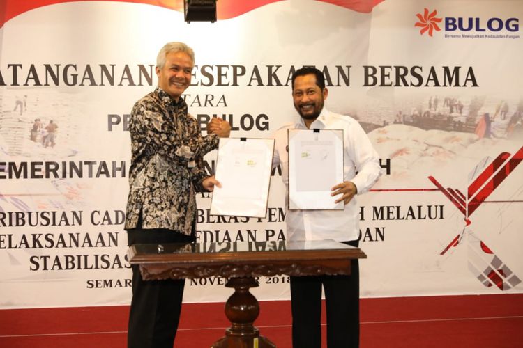 Gubernur Jateng Ganjar Pranowo dan Direktur Utama Bulog Budi Waseso membuat terobosan dengan meluncurkan operasi pasar gaya baru di Gedung Gradhika, Kompleks Kantor Gubernur Jawa Tengah, Semarang, Kamis (22/11/2018).