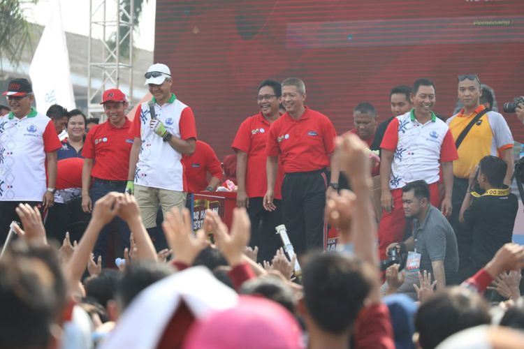 Gubernur Jawa Tengah Ganjar Pranowo (memegang micprohone) dalam suatu acara di Propinsi Jawa Tengah.