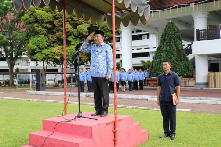 Sekretaris Provinsi Sulawesi Utara Edwin Silangen bertindak sebagai Inspektur Upacara pada apel bersama menyambut hari ulang tahun (HUT) Korps Pegawai Republik Indonesia (Korpri) ke-47.
