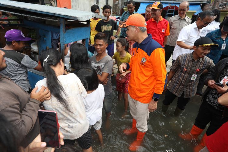 Di saat meninjau lokasi banjir di Kota Semarang, Selasa (5/12/2018), Gubernur Jawa Tengah Ganjar Pranowo tak ketinggalan mentraktir warga makan mie ayam.