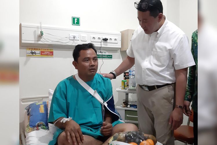 Krishna Syarif, Direktur Pelayanan BPJS Ketenagakerjaan menjenguk salah satu peserta BPJS Ketenagakerjaan korban Tsunami Selat Sunda