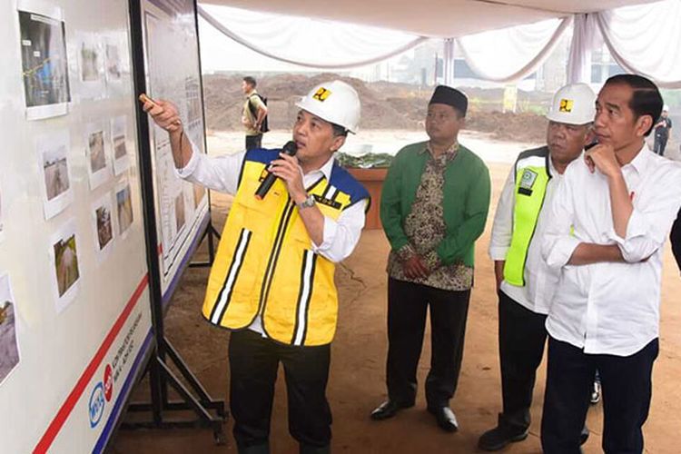 Dirjen SDA Kementerian PUPR Hari Suprayogi saat memberikan pemaparan perkembangan proyek Terowongan Nanjung, Kabupaten Bandung kepada Presiden Joko Widodo dalam kunjungannya, Minggu (10/3/2019) pagi.