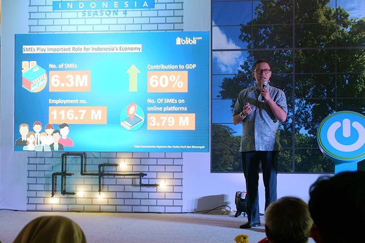 Deputi CMO Blibli.com Andy Adrian saat memaparkan program The Big Start kepada tamu undangan yang hadir.