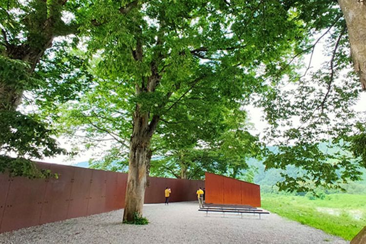 Instalasi seni di desa Echigo-Tsumari berpadu dengan indahnya pemandangan alam yang hijau. (Didi Kaspi Kasim)