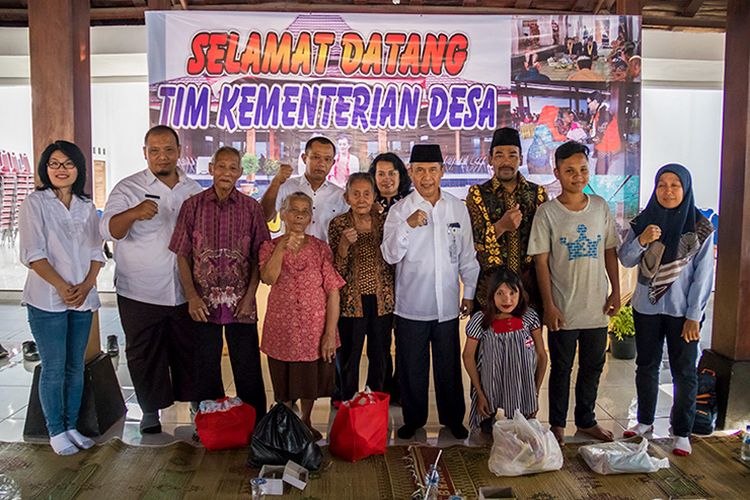 Perwakilan Kemendes PDTT, Kepala Desa Baleharjo, Wakil Bupati Gunungkidul, dan Perangkat Pemerintahan Kabupaten Gunungkidul Berfoto Bersama Penerima Bantuan WKSBM