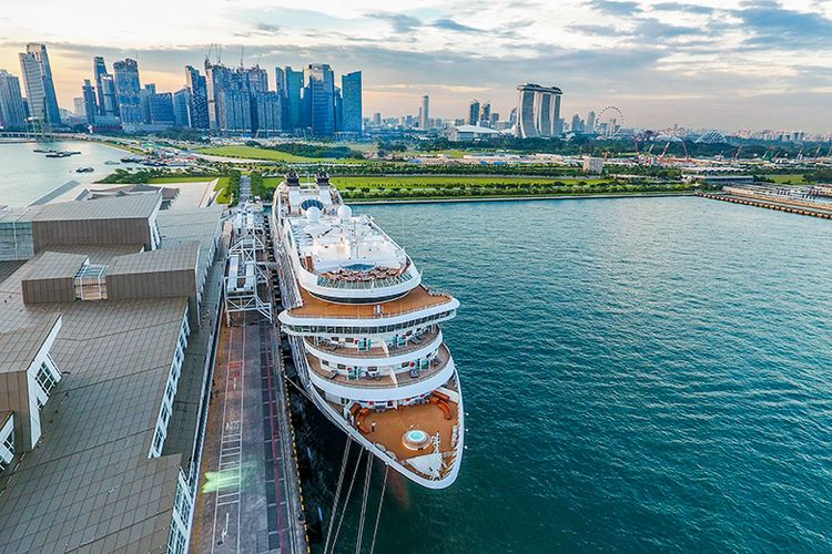Kapal Pesiar di Marina Bay Cruise Centre, Singapura