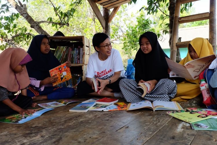 Global Communication APP Sinar Mas, Lia Maryani menemani anak-anak membaca di TBM Saung Huma