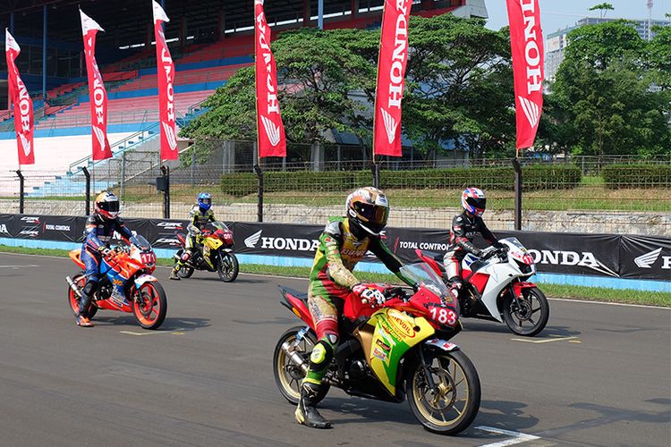 Para pebalap bersiap memacu motornya di garis start pada gelaran ICE Day 2019 di Sirkuit Sentul, Bogor.