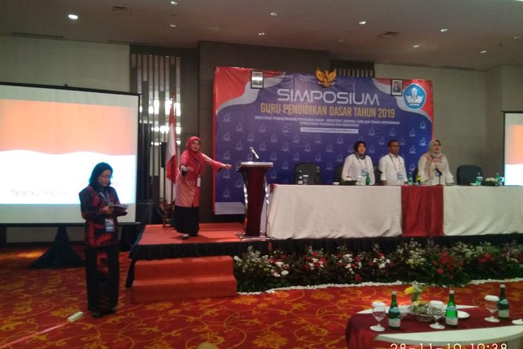 Kasubdit Kesharlindung Dit PG Dikdas saat membuka simposium guru di Jakarta, Kamis (28/11/2019)