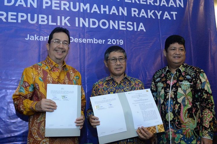 (Dari kiri ke kanan) Direktur Kepesertaan BP Jamsostek E Ilyas Lubis, Direktur Jenderal Bina Konstruksi Syarif Burhanuddin, dan Deputi Direktur Bidang Kepesertaan Korporasi BP Jamsostek Zainudin(Dok. BP Jamsostek)