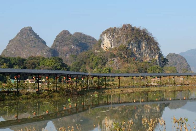Terdapat beragam spot foto menarik di area wisata Jiulong Town.