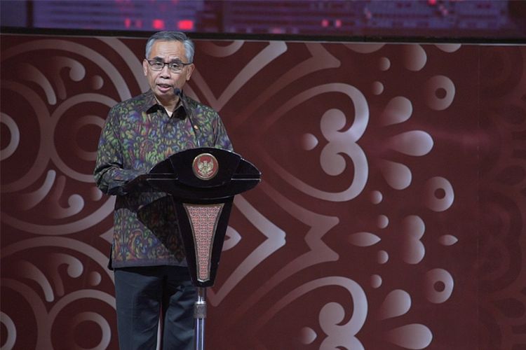 Ketua Dewan Komisioner OJK Wimboh Santoso menyampaikan sambutan di Pertemuan Tahunan Industri Jasa Keuangan 2020 ( Instagram OJK @ojkindonesia)