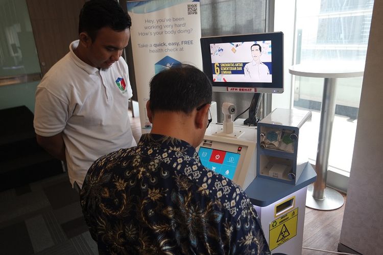 Demo penggunaan ATM Sehat pada kick-off Identik 2020 di Cyber 2 Tower, Kuningan