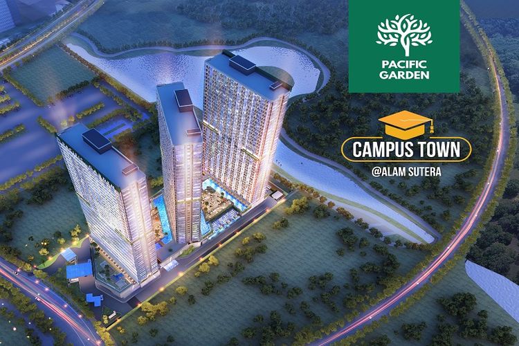 Ilustrasi tampak luar apartemen Pacific Garden terdiri atas tiga bangunan