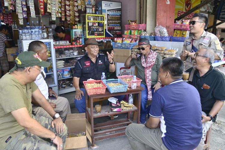 Rehat di Tomohon, Sulawesi Utara Rusli Habibie bersama rombongan Jelajah Wisata Sulawesi 2020 singgah di warung kopi warga, menikmati kacang kawangkoan.