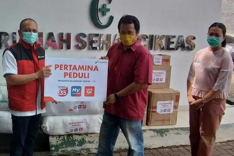 Penyerahan simbolis bantuan APD dari Pertamina di Rumah Sehat Cikeas.