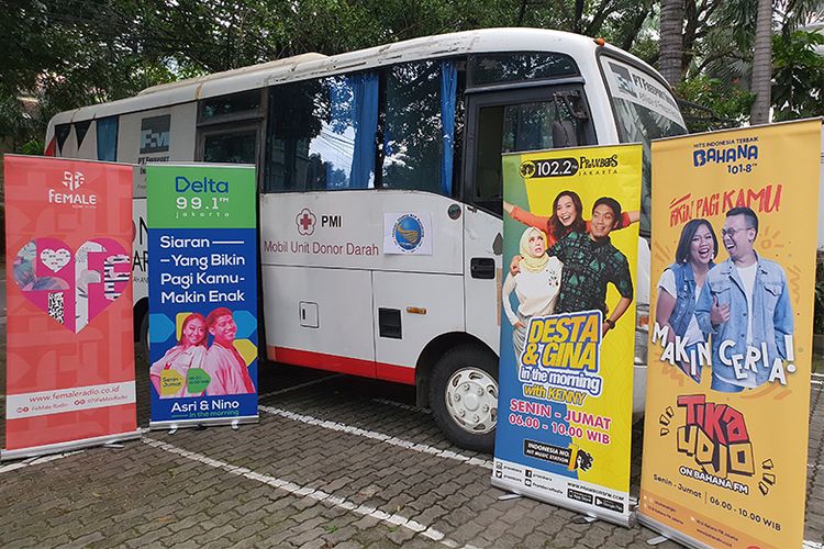 Bis untuk mendonor darah milik PMI yang diparkir di area kantor Masima Radio Network
