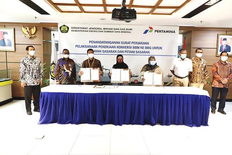 Penandatanganan Surat Perjanjian Pelaksanaan Pekerjaan Konversi BBM ke BBG untuk Nelayan Sasaran dan Petani Sasaran Tahun Anggaran 2020, Jakarta (4/8/2020).(Dok. Pertamina)