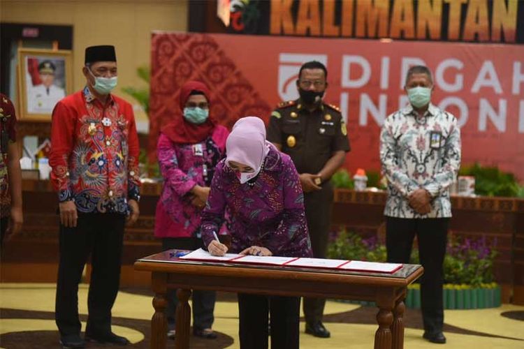 Direktur Utama PT Pertamina Nicke Widyawati menandatangani MoU pemberdayaan aset jalan sepanjang 60 kilometer di Kalimantan Tengah. (DOK.Pertamina)