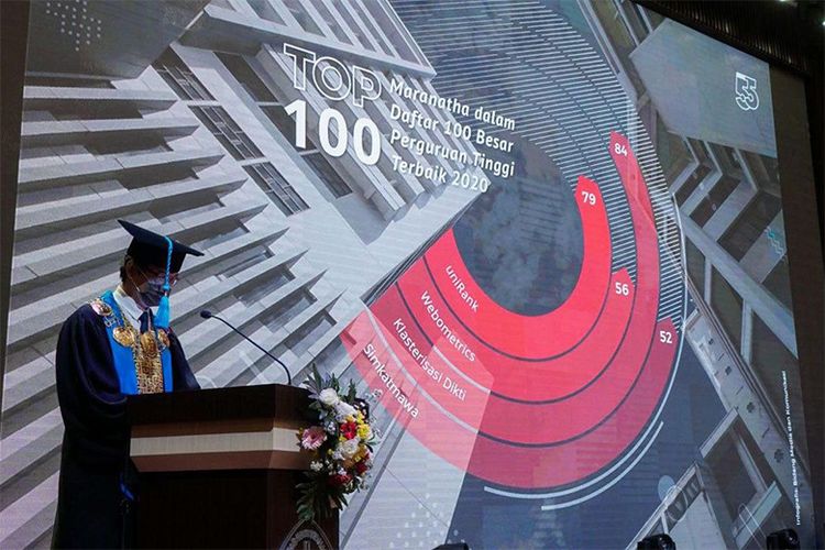 Rektor UK Maranatha memberikan sambutan pada acara sidang terbuka dalam rangka dies natalis ke-55 UK Maranatha (Jumat, 11/9/2020) (Dok. Medkom Maranatha)