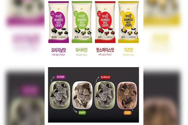 Varian rasa camilan rumput laut Korea dalam kemasan.