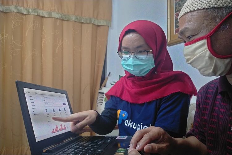 Tim Aku Pintar Indonesia (kiri) memperlihatkan cara penggunaan aplikasi berbasis web Aku Pintar Sekolah kepada perwakilan sekolah. (Dok. Aku Pintar Indonesia)