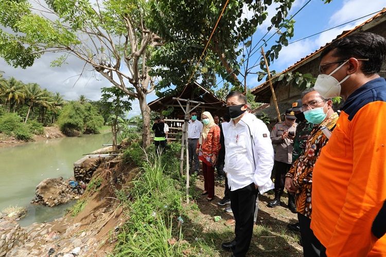 Menteri PPN/Kepala Bappenas Suharso Monoarfa saat mengecek kondisi bantaran Sunga Cipalebuh, Pamengpeuk, Garut, Jawa barat untuk mitigasi banjir, Jumat (23/10/2020). ((Dok. Kementarian PPN/Bappenas) )