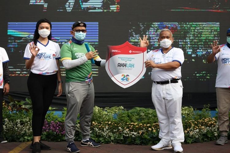 Suasana pembukaan Port Virtual Run and Ride 2020 di halaman kantor Pelindo 3 Regional Jawa Timur di Surabaya, Sabtu pagi (14/11).