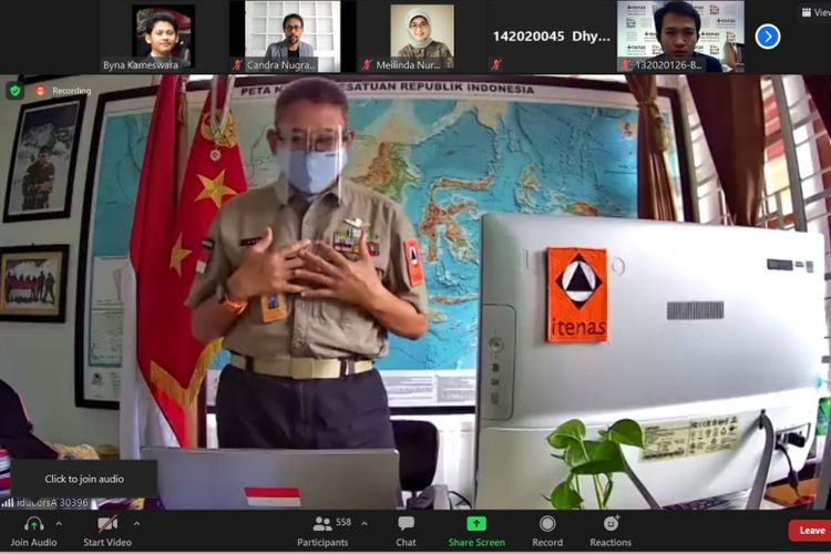 Mayjen TNI (Purn) Asrobudi, S.IP., M.Si, memberikan materi dalam kuliah umum Pembinaan Kesadaran Bela Negara (PKBN) untuk para mahasiswa baru Institut Teknologi Nasional (Itenas) Bandung ((Dok. Itenas) )