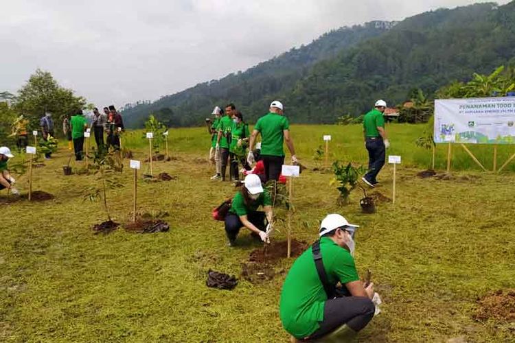 Penanaman pohon oleh PT Bumiyasa Indonesia Energi dan PT Mandiri Manajen Investasi di Desa Baseh, Kecamatan Kedungbanteng, Kabupaten Banyumas, Jawa Tengah, Jumat (4/12/2020).