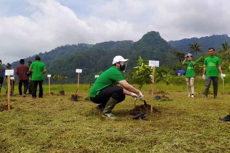 Direktur Utama PT Bumiyasa Indonesia Energi Tommy Hesarid Simamora menanam pohon di Desa Baseh, Kecamatan Kedungbanteng, Kabupaten Banyumas, Jawa Tengah.