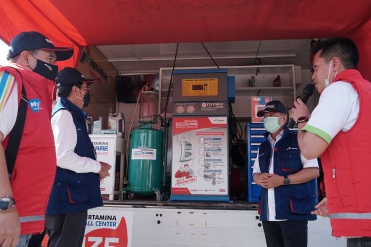 Direktur Sales & Marketing PT Pertamina Lubricants, Andria Nusa sempat melakukan kunjungan ke Rest Area KM 57 Karawang, Jawa Barat, Kamis (24/12/2020) (Author: Dok. Pertamina)