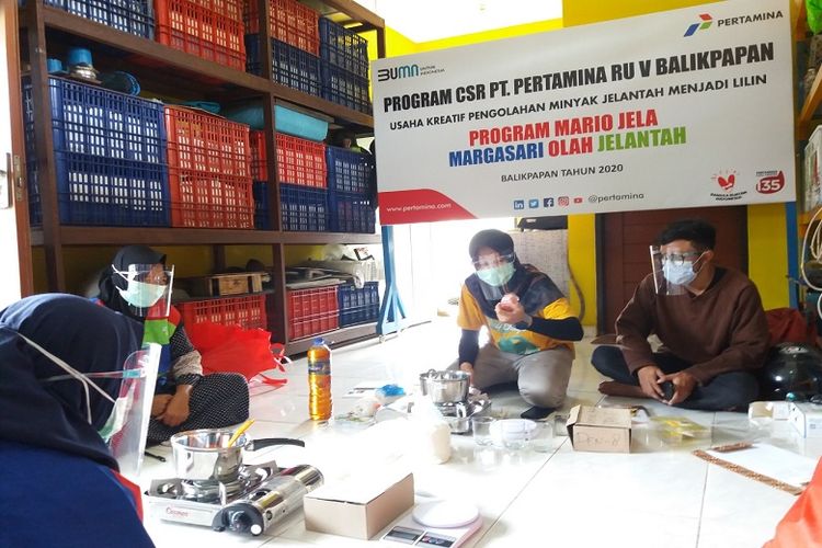 Pelatihan pembuatan lilin di Kampung Atas Air, Kelurahan Margasari, Kota Balikpapan, Sabtu (26/12/2020).((Dok. Pertamina))