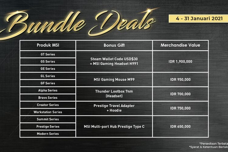 Hadiah menarik yang disediakan MSI Indonesia di promo Bundle Deals, 4-31 Januari 2021.