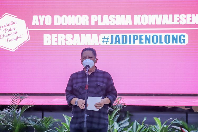 Pelaksana Tugas (Plt) Wali Kota Surabaya Whisnu Sakti saat membuka acara Gebyar Arek Suroboyo Wani Donor Plasma