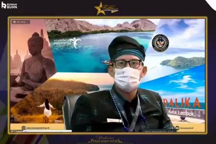Menteri Pariwisata dan Ekonomi Kreatif (Menparekraf) Republik Indonesia (RI) Sandiago Salahuddin Uno pada acara Anugerah Prestasi Inkubasi Bisnis 2021 yang berlangsung secara virtual, Selasa (16/2/2021).