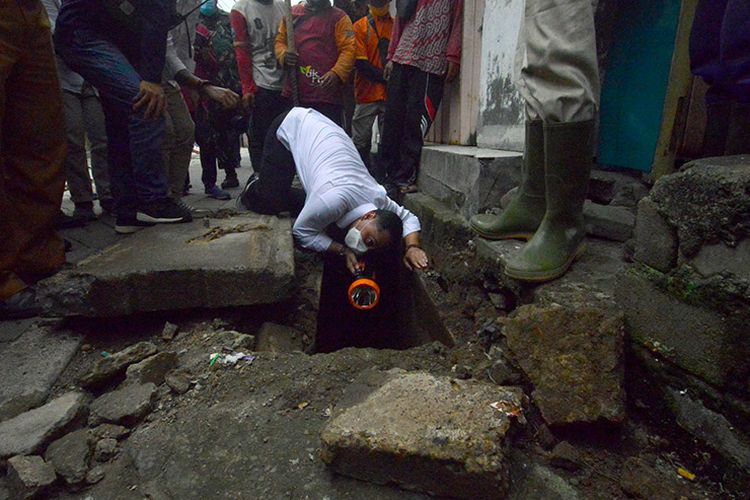 Eri Cahyadi melakukan sidak saluran di kawasan Tandes.