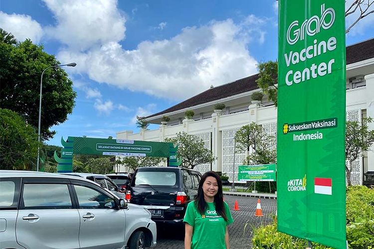 Iki Sari Dewi saat mengawasi pelaksanaan Grab Vaccine Center Bali, pusat vaksinasi dengan konsep drive-thru pertama di Asia Tenggara