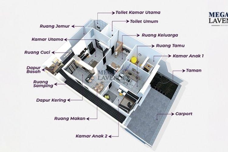 Denah rumah di perumahan Mega Lavender