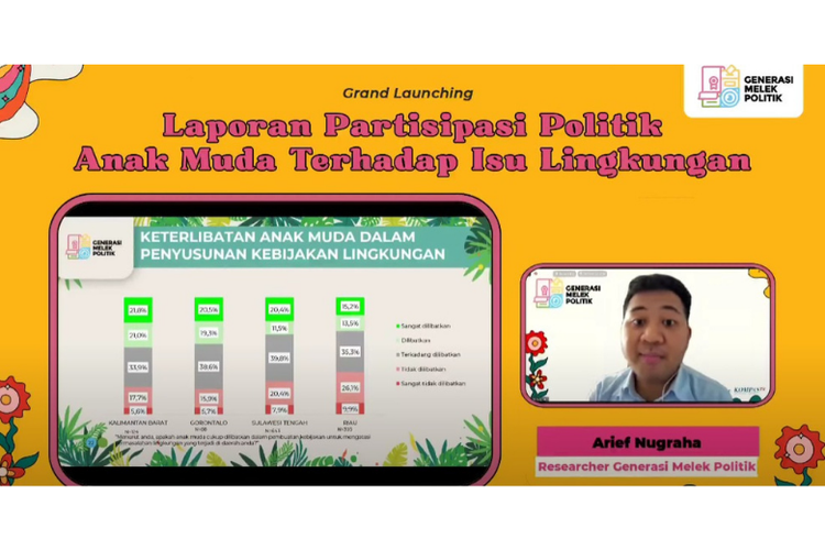 Generasi Melek Politik memaparkan laporan hasil survei Partisipasi Politik dan Lingkungan dari Gen Z dan Milenial.