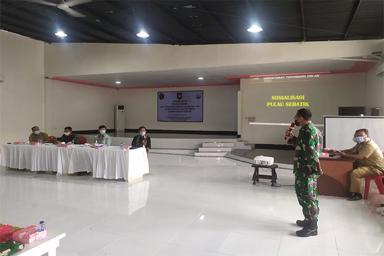 Brigjen TNI Asep Edi Rosidin bersama Kemendagri melakukan sosialisasi batas negara Pulau Sebatin. (Dok. Kemendagri)