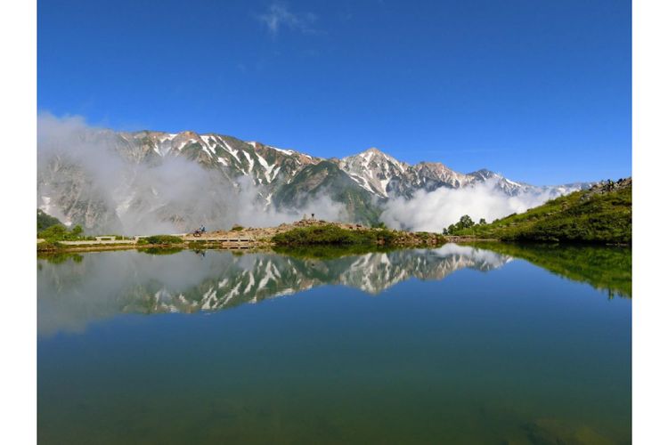 Pemandangan Shirouma Sanzan yang tercermin di Danau Happo